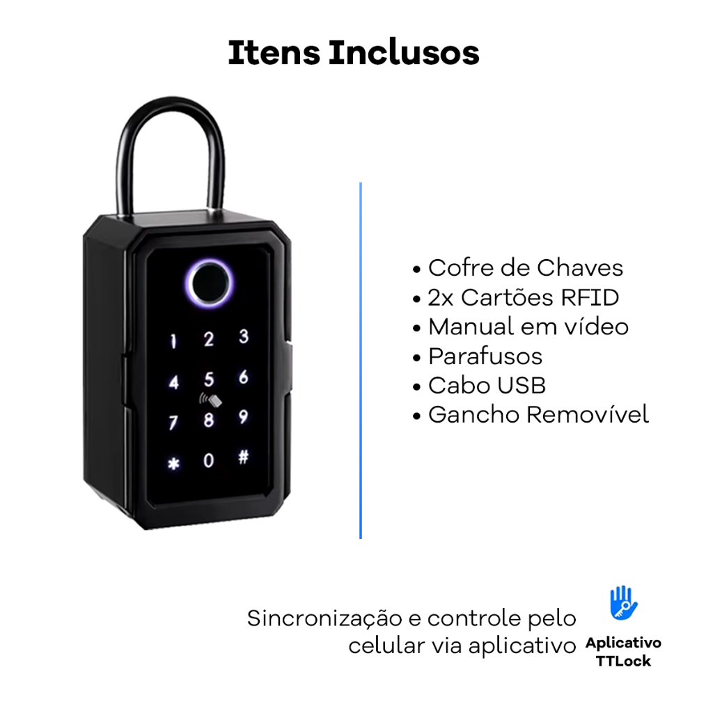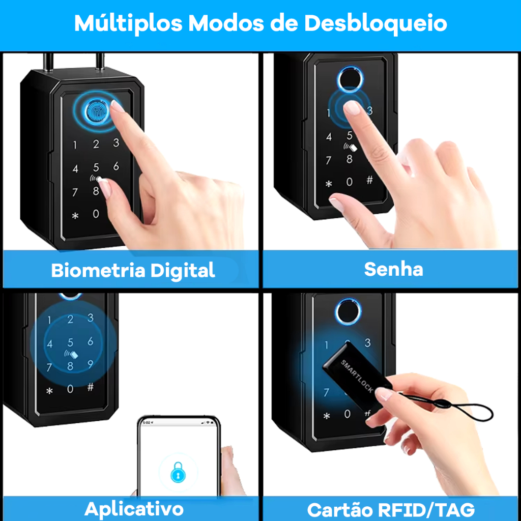 Guarda chaves eletrônico impressão digital, senhas, cartões, Bluetooth.